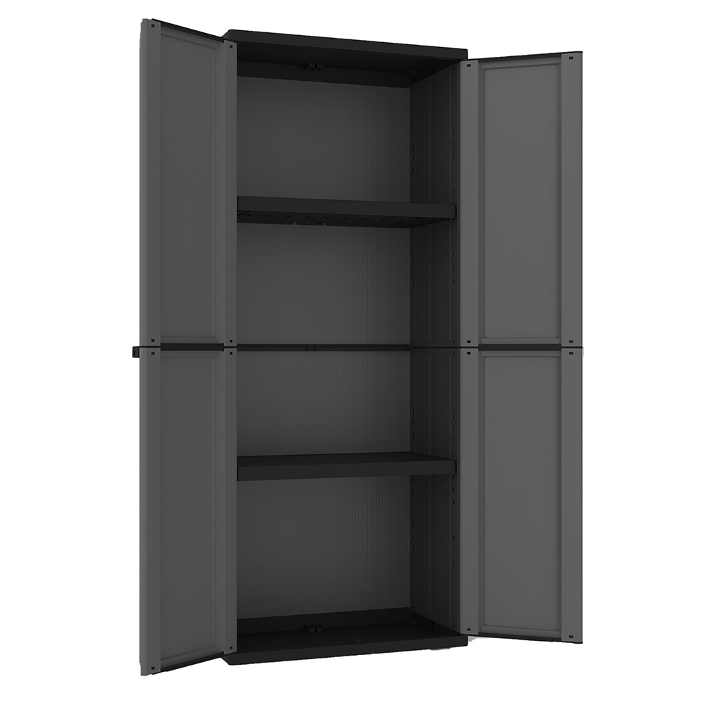 ARMARIO J-BASE 268, FABRICADO EN POLIPROPILENO. COLOR GRIS OSCURO, 2 BALDAS REGULABLES EN ALTURA, POSIBILIDAD DE CIERRE CON CANDADO. MEDIDA 68 x 37,5 x 163,5 cm