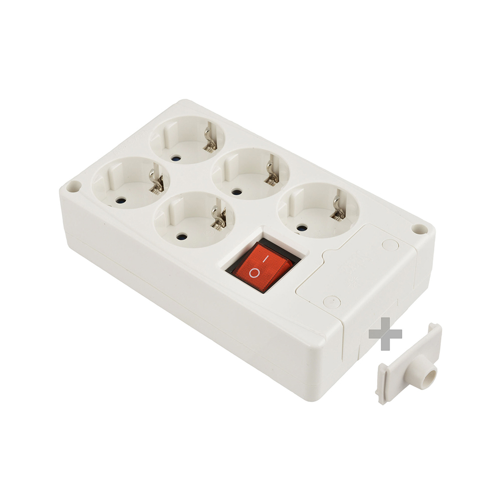 BASE MULTIPLE 5 TOMAS T/TL 10/16 A 250 V BLANCO + INTERRUPTOR LUMINOSO
