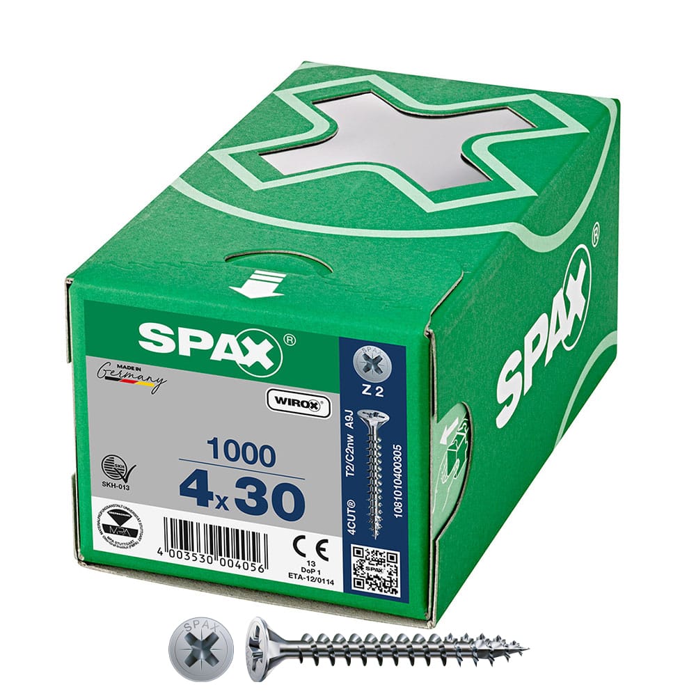 CAJA 1000 UNIDADES TORNILLO UNIVERSAL CABEZA PLANA WIROX 4X30MM ROSCA COMPLETA, RANURA EN CRUZ Z2, 4CUT – 1081010400305