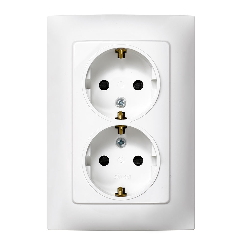DOBLE BASE ENCHUFE CON TT BLANCO CON MARCO SERIE 10. MATERIAL PLÁSTICO, IP20, 230V, 16A. 2 POLOS Y TOMA TIERRA. MEDIDA 12x4x8,4 cm. MEDIDA DE ENCLAVAMIENTO 2,5cm