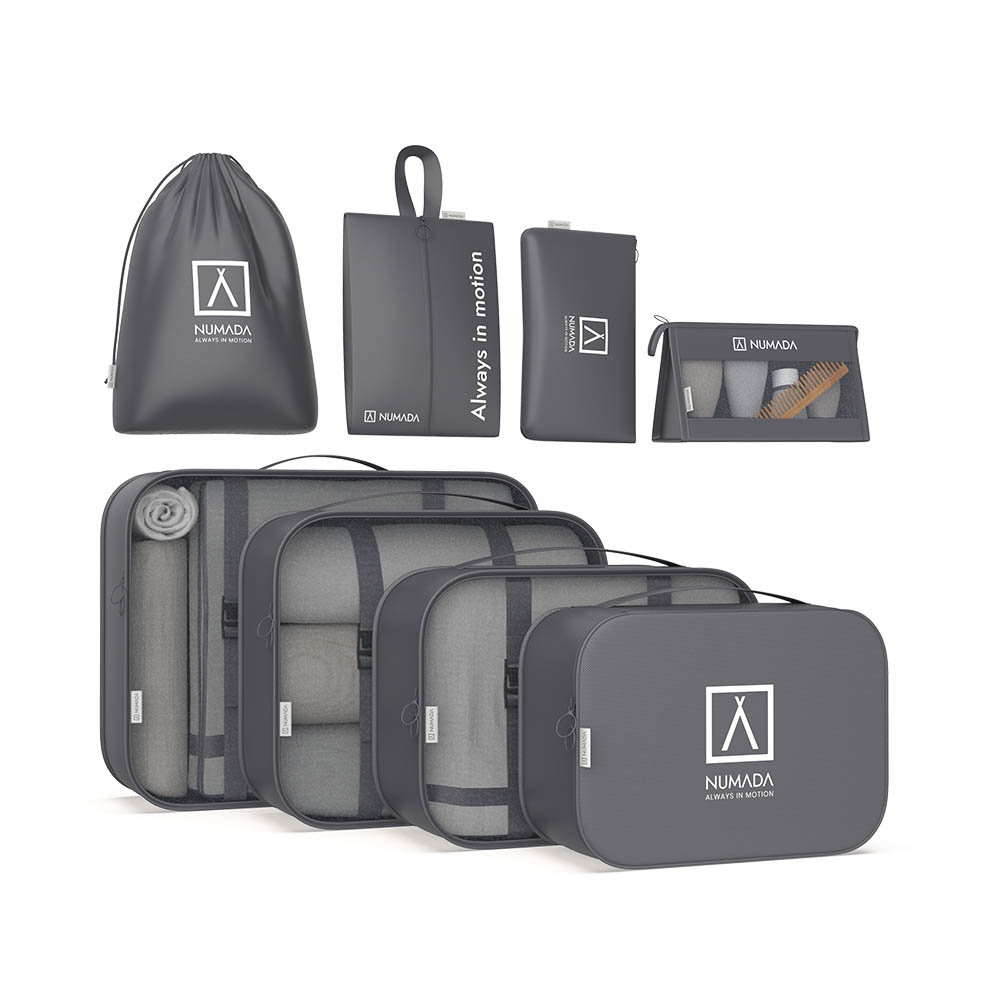 ORGANIZADOR DE MALETA GRIS OSCURO. 8 PIEZAS